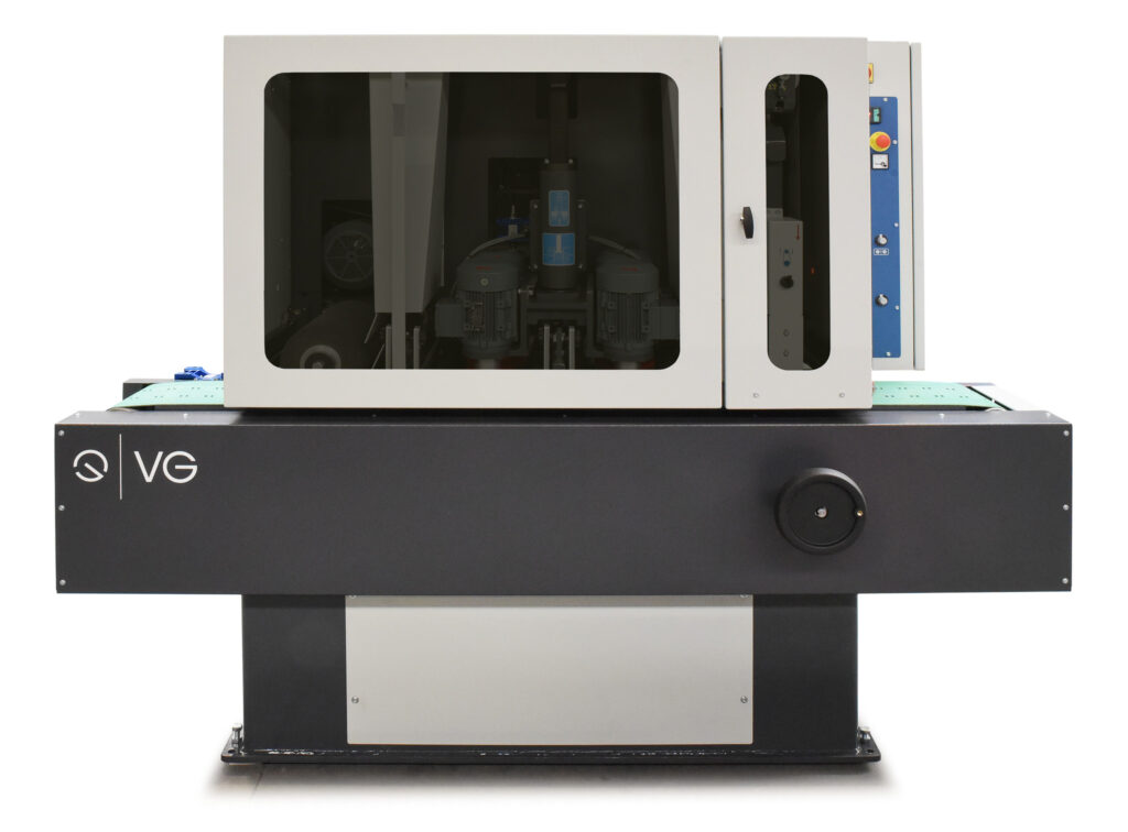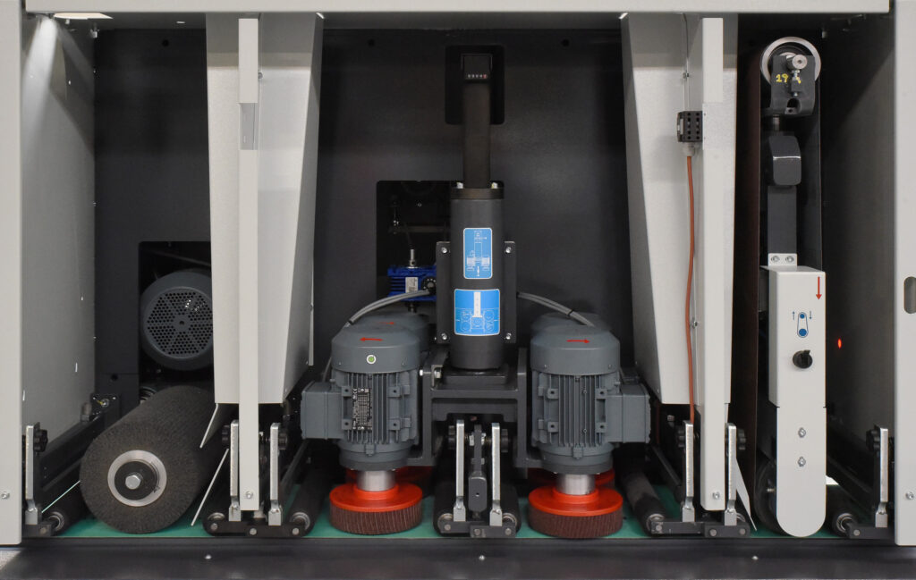 Als letzter Aggregat kann ein Finish-Bürste (auch bekannt als Scotchbrite) eingesetzt werden. Hiermit kann ein schöne Lange-Kratz-Finish gemacht werden.